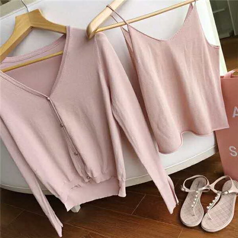 V领开衫外套吊带背心两件套