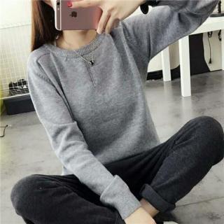 长袖圆领套头毛衣